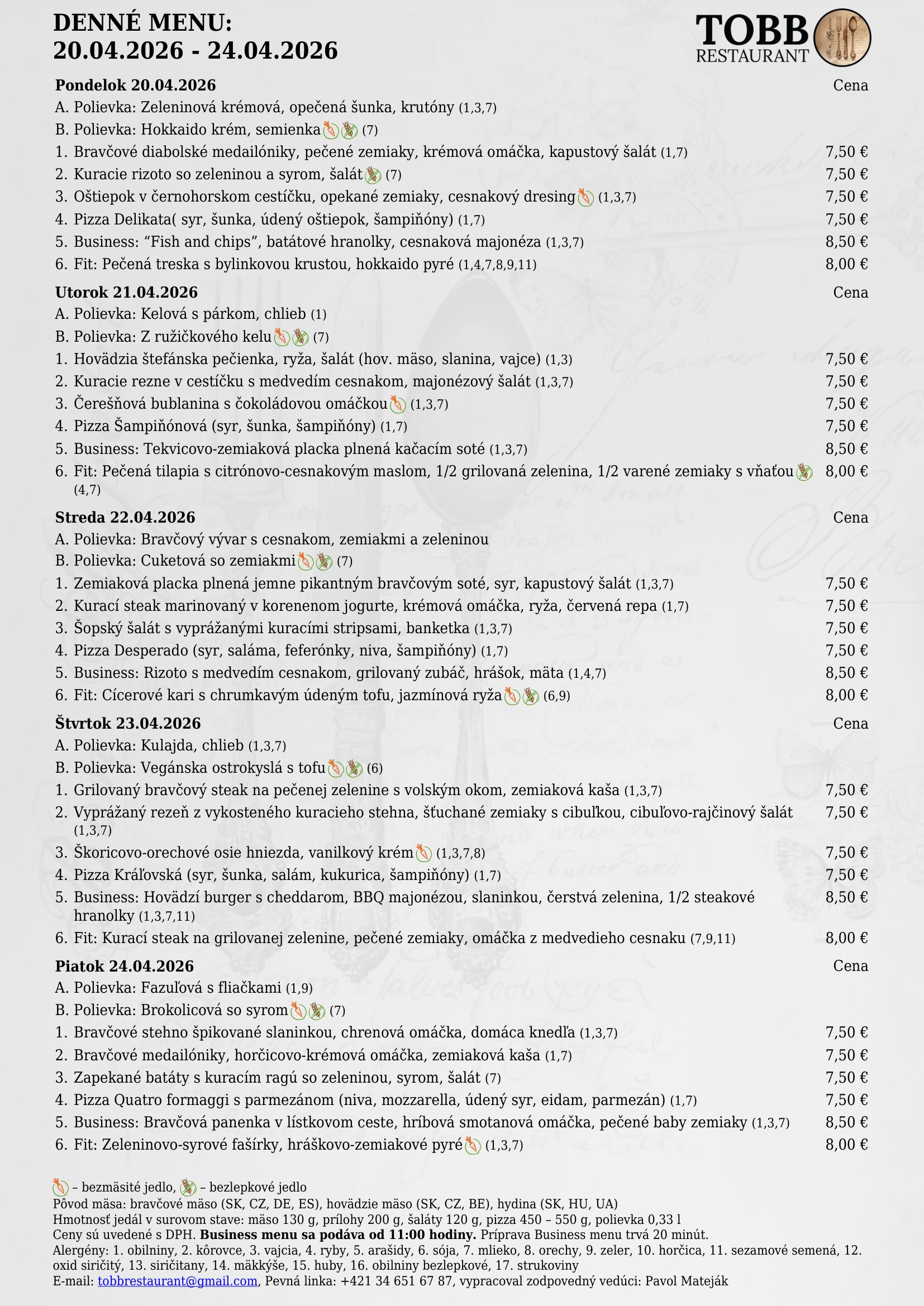 Denné menu na rozvoz môžete objednávať od 6:30 do 9:30 na tel. č. 034 651 6787.