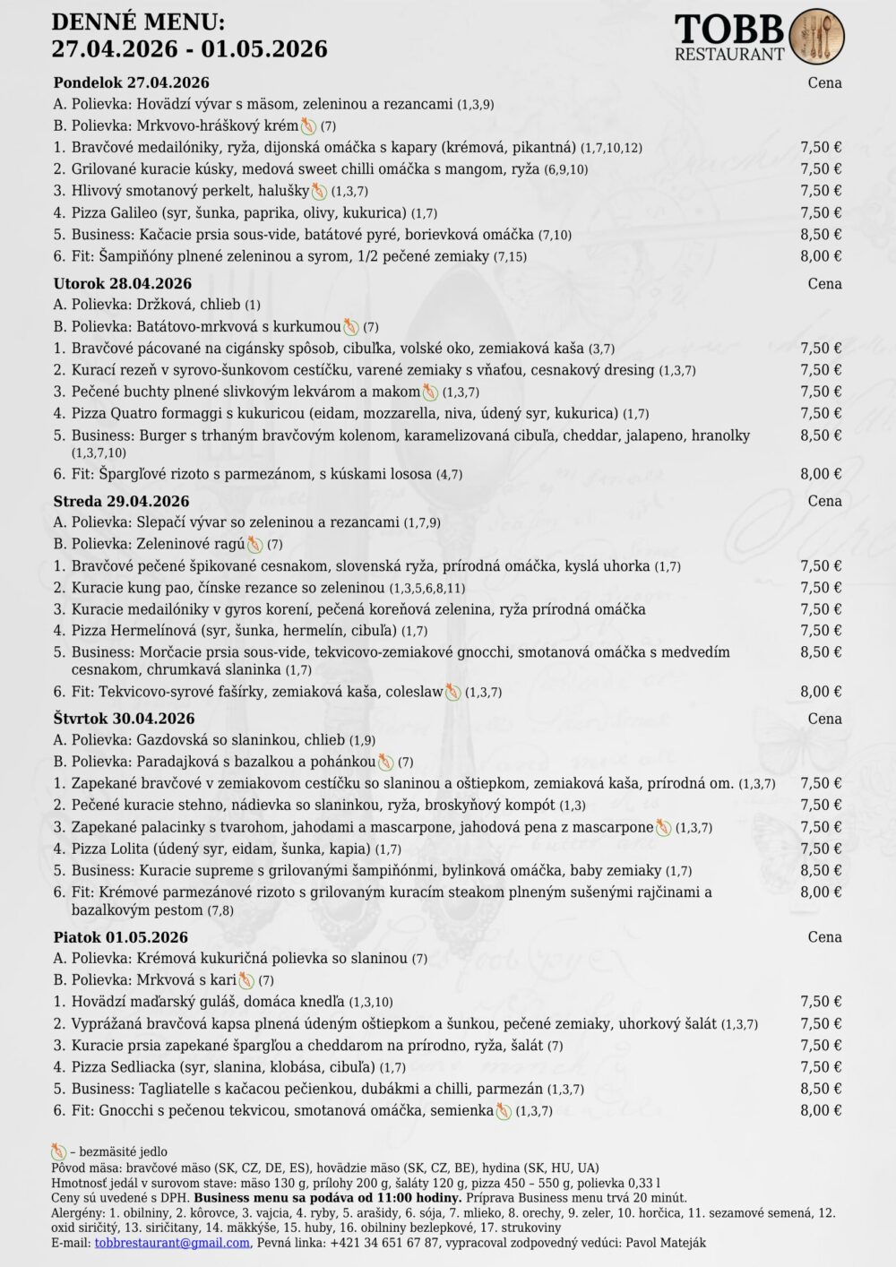 Reštaurácia Tobb restaurant sa nachádza na konci vodnej nádrže (pri hrádzi). Pre našich zákazníkov, ponúkame jedlá modernej i netradičnej kuchyne. Okrem denného menu a jedálneho lístka pripravujeme aj špeciálnu ponuku jedál. U nás si prídu na svoje aj ľudia, ktorí majú možnosť jesť iba bezlepkové jedlá. Ponúkame i možnosť usporadúvať svadby, rôzne oslavy, firemné večierky.